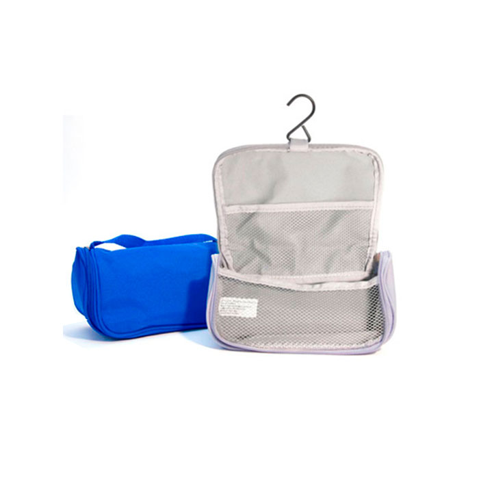 Portaobjetos, set de belleza confeccionado en Nylon. Apertura total con cierre en U. 2 bolsillos interiores de red y gancho para colgar. Manija para traslado. Incluye 6 elementos: cepillo para uñas, alicate, dos separadores de dedos, una lima, una lima en bloque (dos tipos de limas, abrillantador, pulidor).