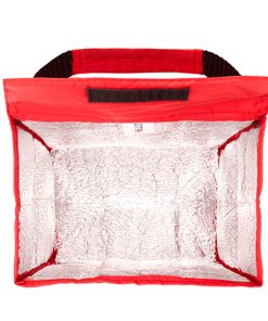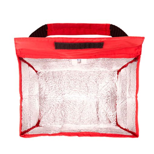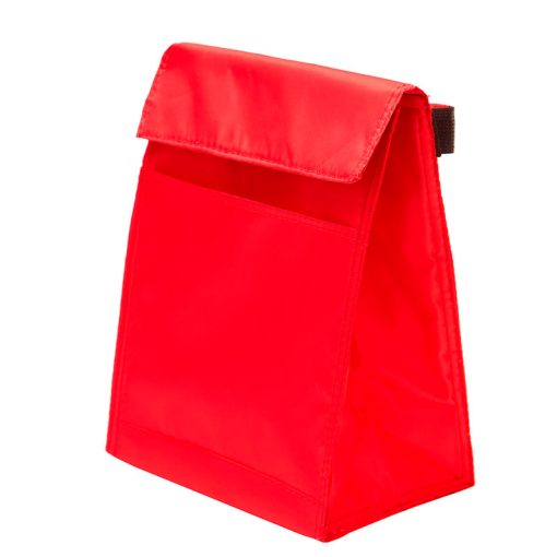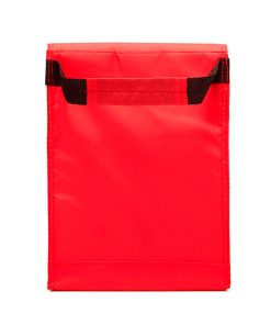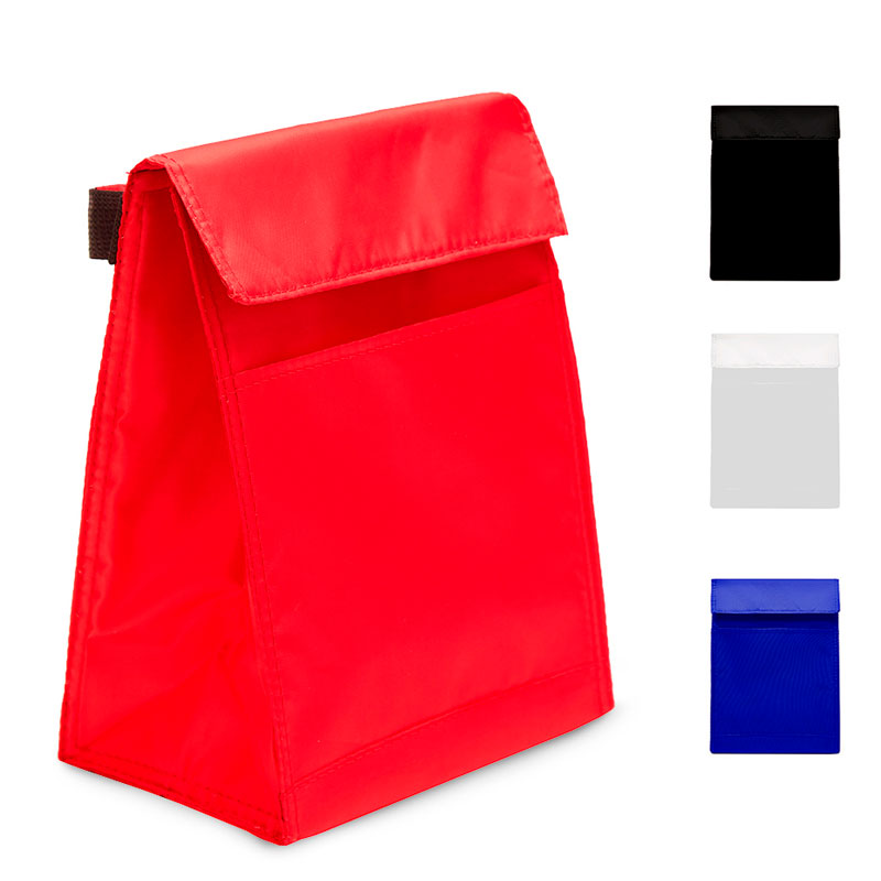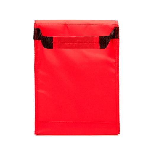 Fabricado en Poliester con interior térmico aluminio FOIL. Cuenta con Bolsillo frontal y cierre con velcro.