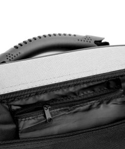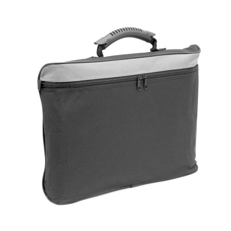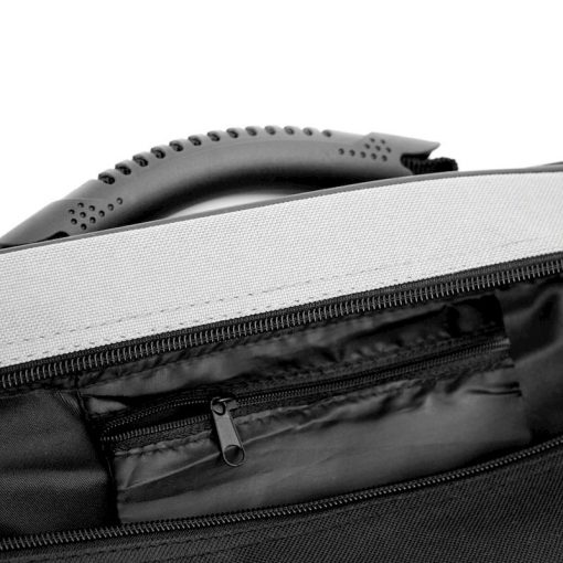 Maletín de cordura con manija superior recubierta de PVC con cierre frontal. Posee un bolsillo porta documentos en su interior.