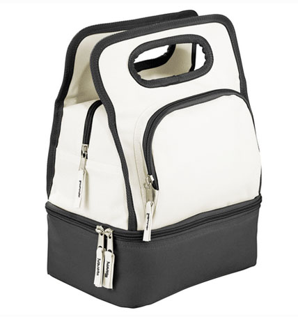 Lunchera con compartimiento central con cierre y un compartimiento inferior porta contenedor, ideal para colocar un tupper. También posee un bolsillo frontal con cierre, lo que la hace super práctica. Su composición es 600D Nylon y revestimiento interior en PEVA . Por últimos las medidas son 22x22x15 cms y su capacidad 8 Litros.