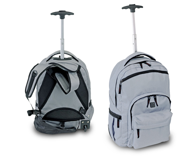 Este es un modelo ejecutivo, elegante y práctico. Tiene ruedas y una manija extensible. También cuenta con 3 bolsillos frontales externos y 2 laterales externos con cierre. Por otro lado, cuenta con salida para auriculares y Tiras y cubre-cintura acolchados. También tiene un bolsillo posterior para guardar correas y un bolsillo inferior-posterior con cubre-ruedas extensible. Por último el mango es extensible hasta 52,5 cm.