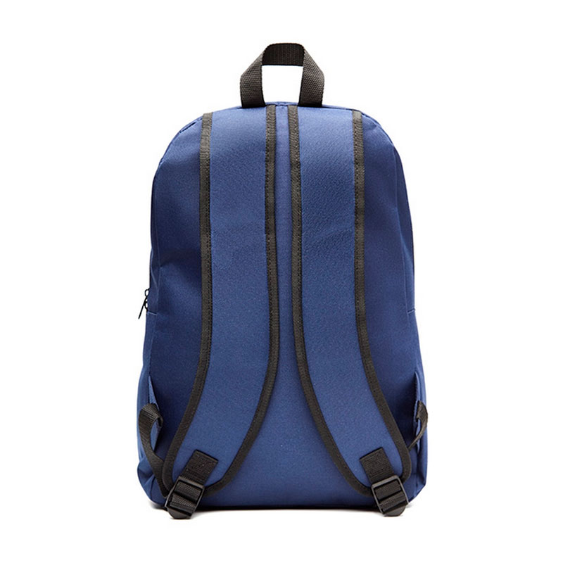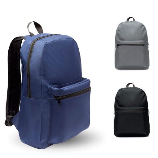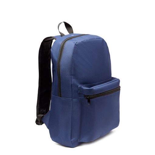 Mochila realizada en poliester con doble compartimento, uno grande principal y otro mas pequeño tipo bolsillo exterior frontal con cierre. Correas ajustables.
