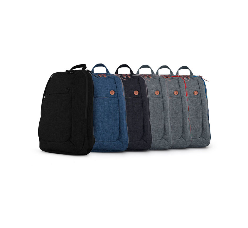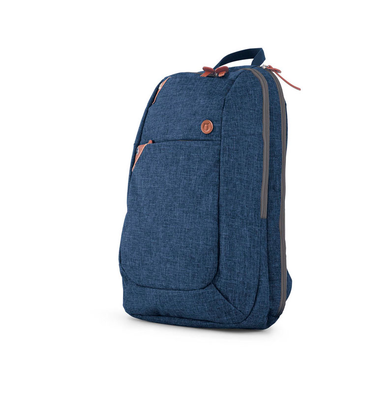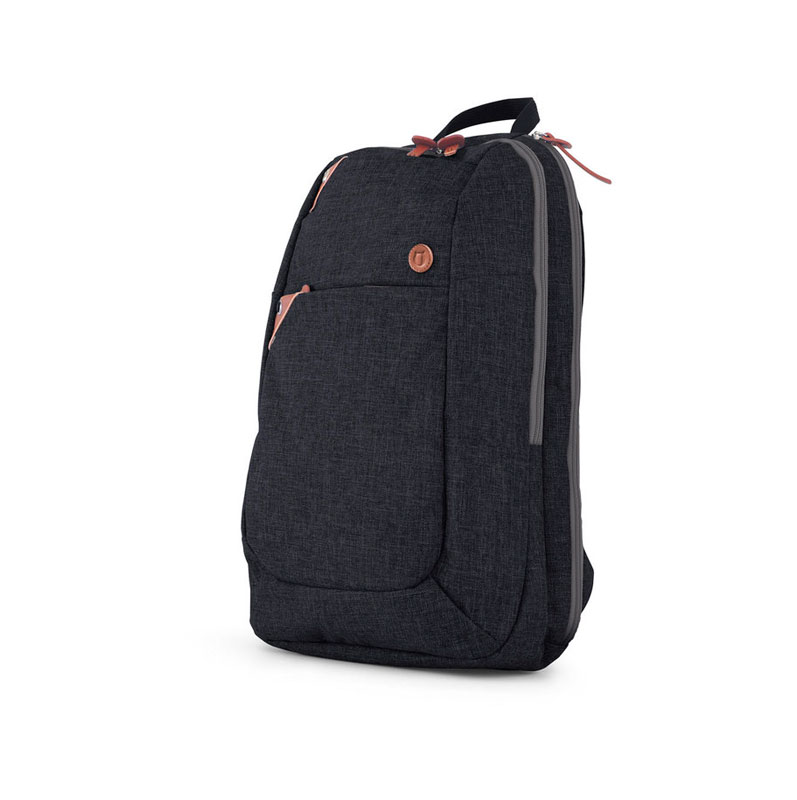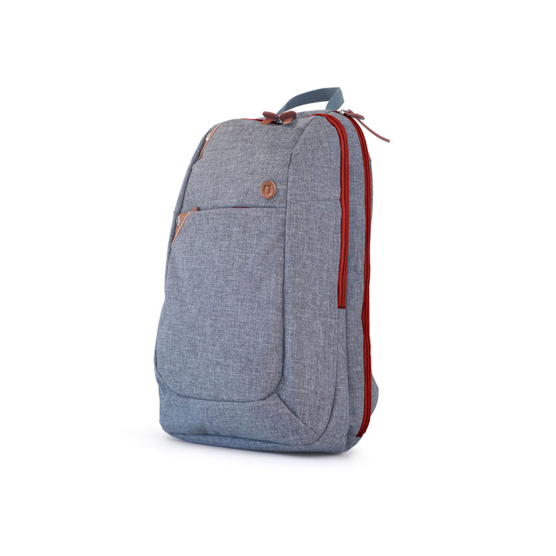 Mochila urbana con compartimiento para notebook de 14 pulgadas. Presenta cierre lateral y bolsillos para organizar.