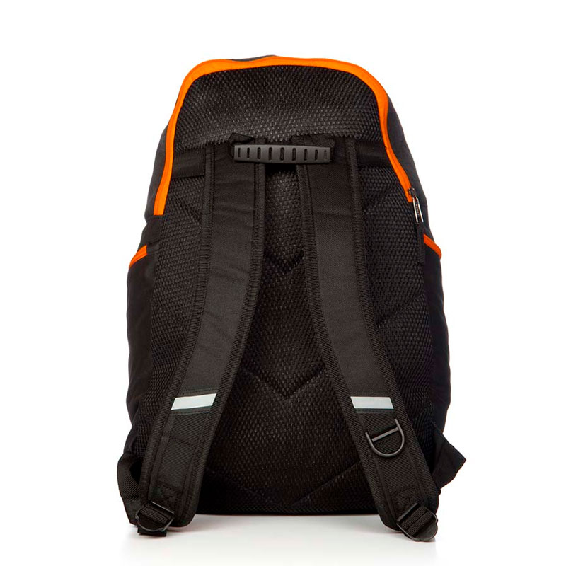 Mochila con elásticos sujetadores exteriores. Bolsillo interno con organizador y llavero.