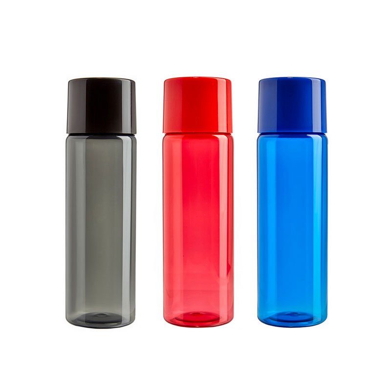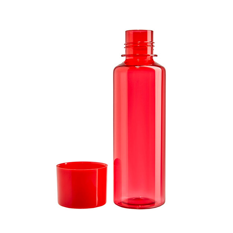 Botella de plástico de 550ml, conformada con PET. Sus medidas son de 21,5 x 6,4cm. Es posible imprimirla a un color o full color.
