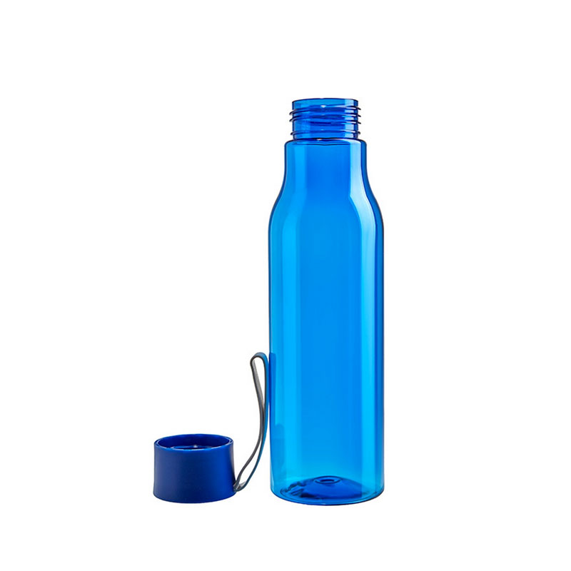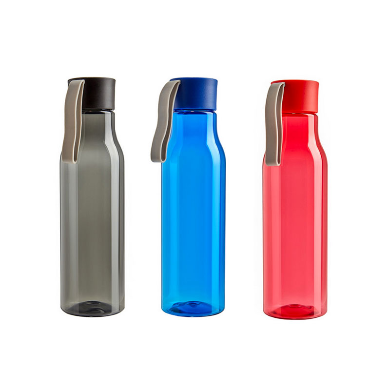 Botella de plástico conformado en PET, con capacidad de 550ml. Presenta correa de silicona para transportarla. Sus medidas aproximadas son de 21,5 x 6,4 Cm. Se puede realizar grabado a 1 color o full color.