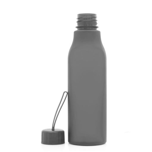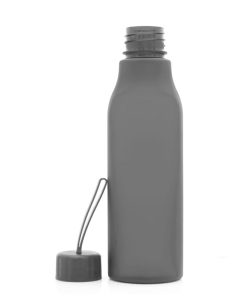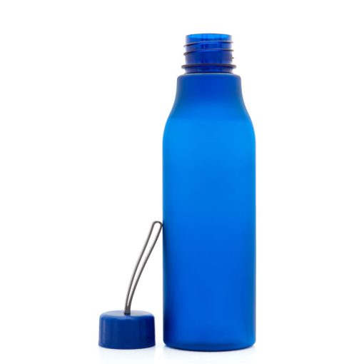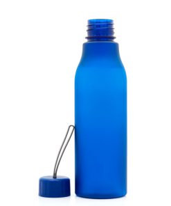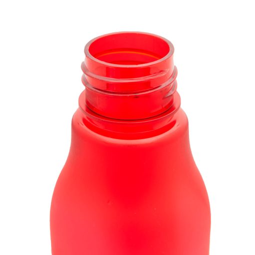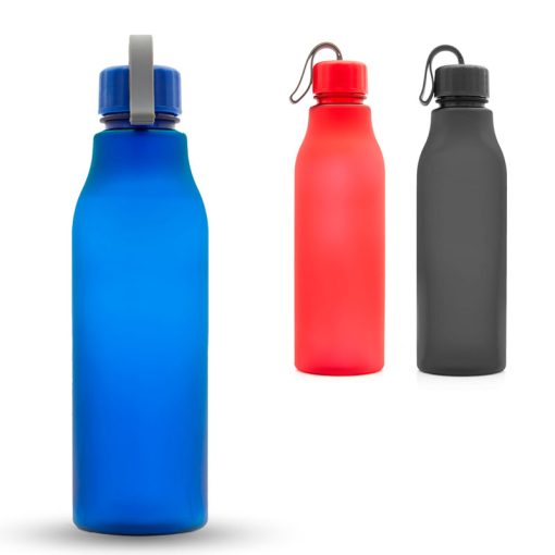Botella deportiva fabticada en PET con acabado frosted. Tapa a rosca y sujetador de silicona
