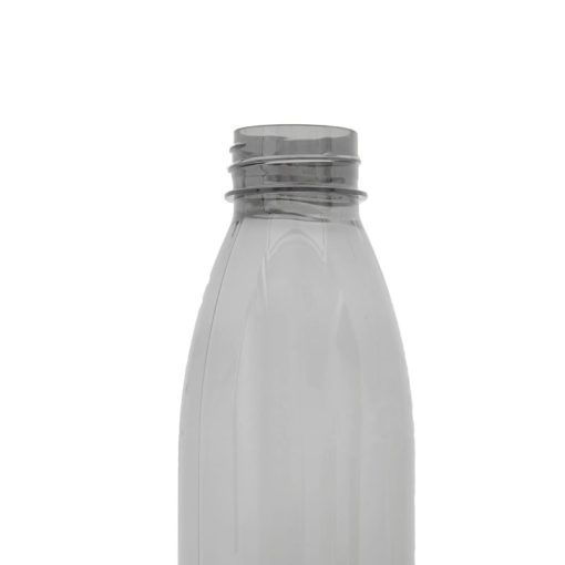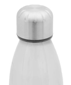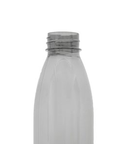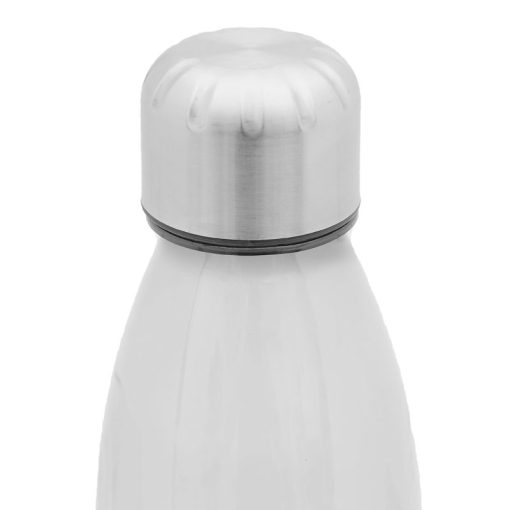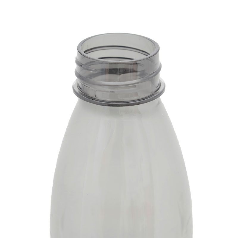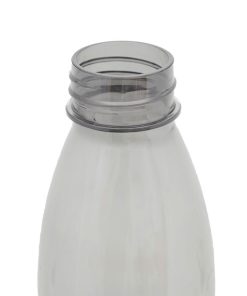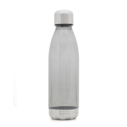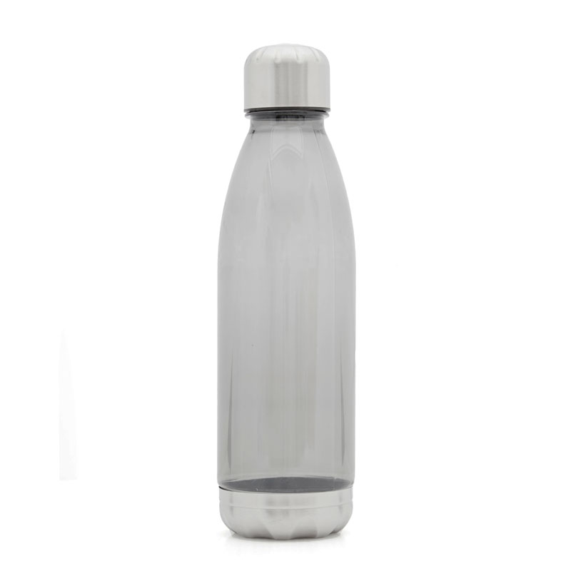Botella con tapa a rosca fabricada en pet con base y tapa de acero inoxidable.