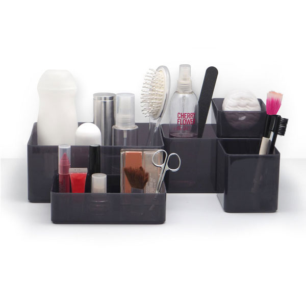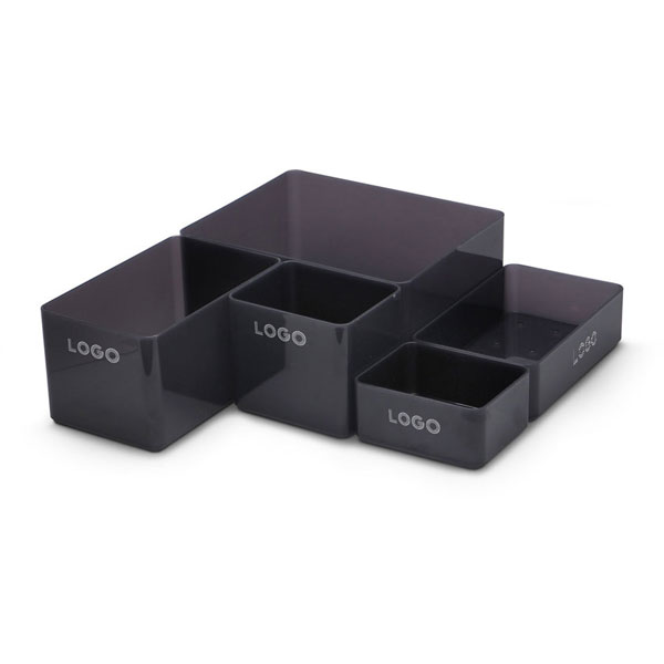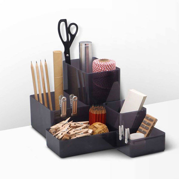 Organizador de escritorio de plástico ideal para mantener el orden. Son 5 módulos apilables que generan distintos espacios.