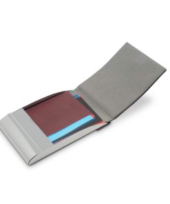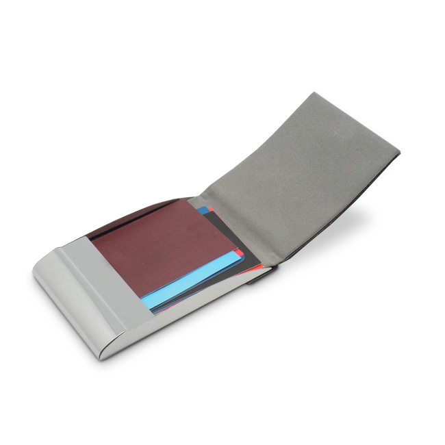 TARJETERO DE CUERO Y METAL VERTICAL Medidas: 9,8 cm x 6,2 cm.