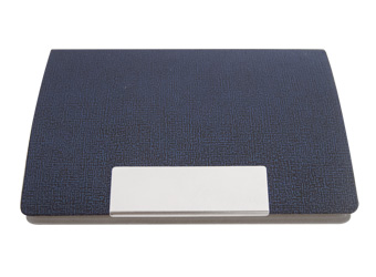 Plástico y Metálico. Medidas 9,5 x 6,5 x 1,1 cm. Exterior de vinilo texturado con amplia placa metálica para impresión. Interior en metal. Cierre imantado.