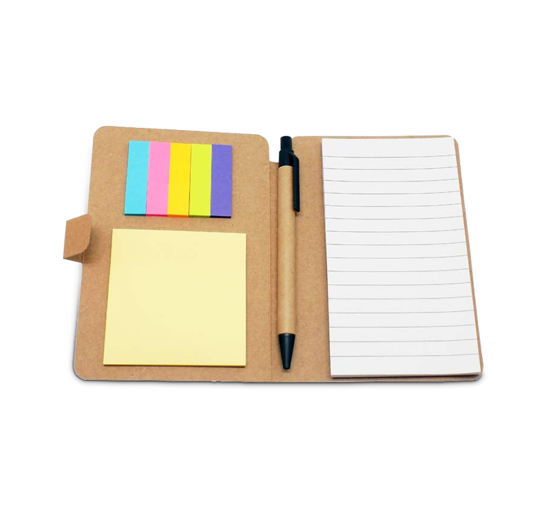 NOTE PAD ECO C/BOLIGRAFO. Anotador línea ecológica Incluye Bolígrafo, post it y block de 50 hojas.