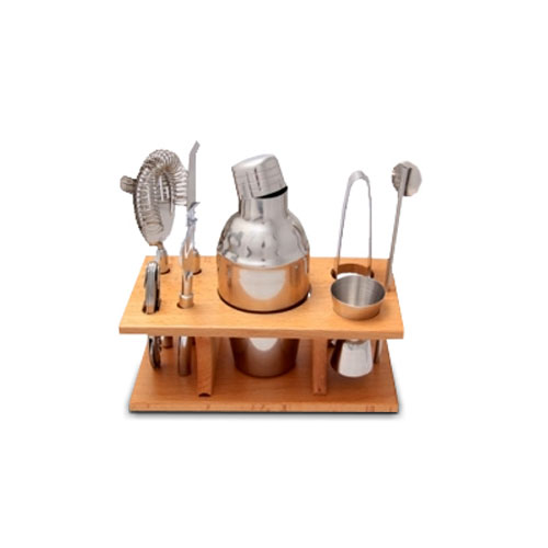 Set de Barman Set de Barman en Stand de Madera Base de Madera Medidas : Base de Madera Aprox 21 cm