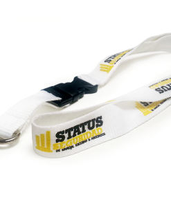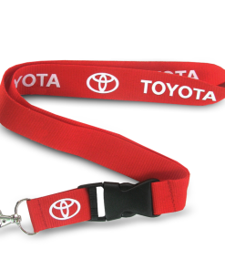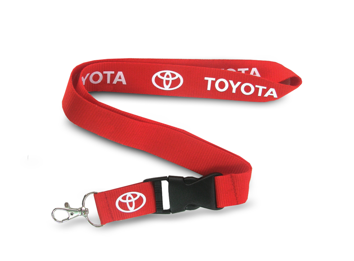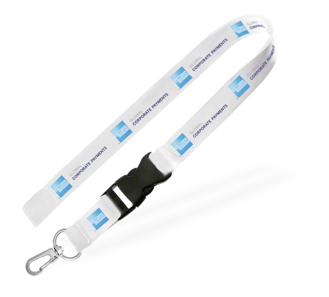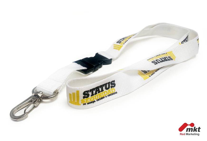 LLavero colgante confeccionado con cinta de polyester tejida estampada, con desmontable plástico y mosquetón zamak.