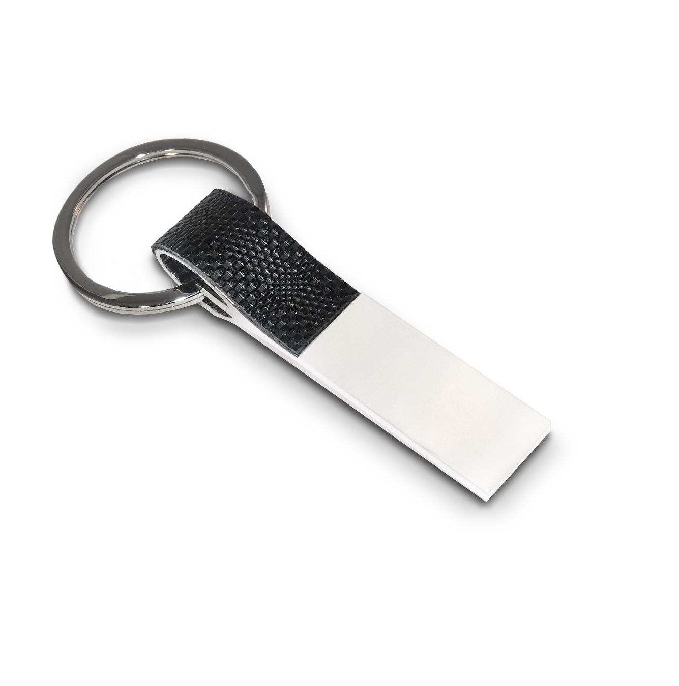 Metal y Plástico. Llavero con forma plana con detalles en goma.