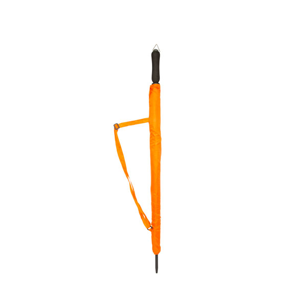 Paraguas Mobile de 8 gajos, de caña y varillas dobles metálicas. El mango es de goma EVA. Incluye funda con bandolera.